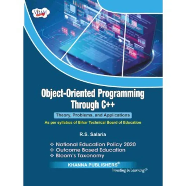 The subject of Object-Oriented Programming is of prime importance for the students of Computer science and TI. Most of the projects are being implemented using Object Oriented Programming since it has the capability to manage the scale and complexity. Since this subject is of practical nature, it requires a thorough understanding of the basic concepts of the subject before putting them into practice. Therefore, keeping in mind the skills required for 21s Century, while writing the book, a special emphasis is laid on the following aspects: o Designed keeping in mind the objectives of NATIONAL EDUCATIONAL POLICY-2020 and OUTCOME BASED EDUCTION O Simple and lucid language enables even an average reader to grasp the fundamental concepts of the subject. o Numerous illustrative examples demonstrate the application of the concepts. o Numerous review and programming exercises for assessments as per BLOOM’S TAXONOMY. o Multiple choice questions (MCQs) provide an opportunity for self-assessment of the fundamental concepts learned. o Frequently asked questions (FAQs) to conquer the technical round of the CAMPUS PLACEMENT PROCESS with flying colors. o Lab Manual is provided to guide the students in handling their laboratory work, Enjoy reading this book, and feel free to send your free and frank comments, suggestions, and positive criticism. Your valuable input will help me to improve and fine-tune the book to meet your expectations.